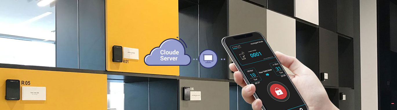 암호화된 디지털키는 전세계 어디서나 e-Smart 클라우드 서버를 통해 생성되며 특정 락커락 또는 도어락에 액세스 할 수 있습니다.